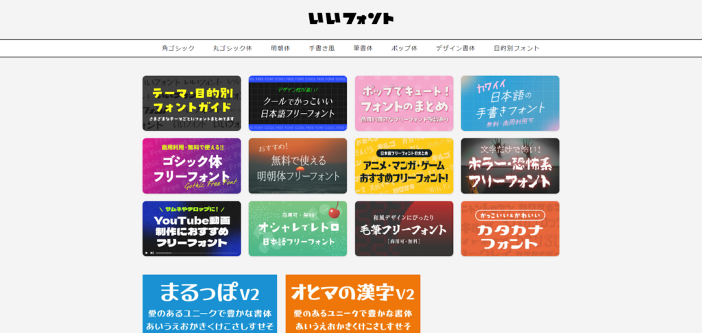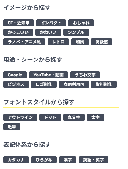 特に便利なのが、テーマや目的別にフォントがまとめられているページです。