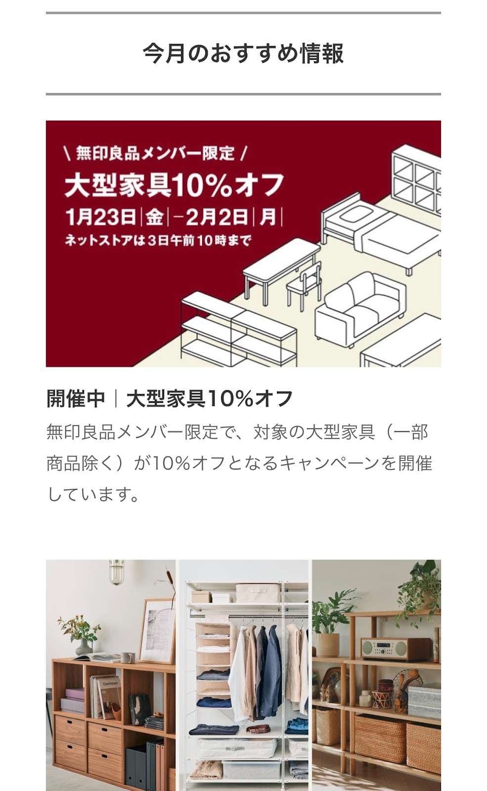 「しるしの無い良い品」という意味を持つブランド名の通り、シンプルで合理的な商品開発を続けてきた企業の姿勢が、そのままメルマガのデザインにも表れています。