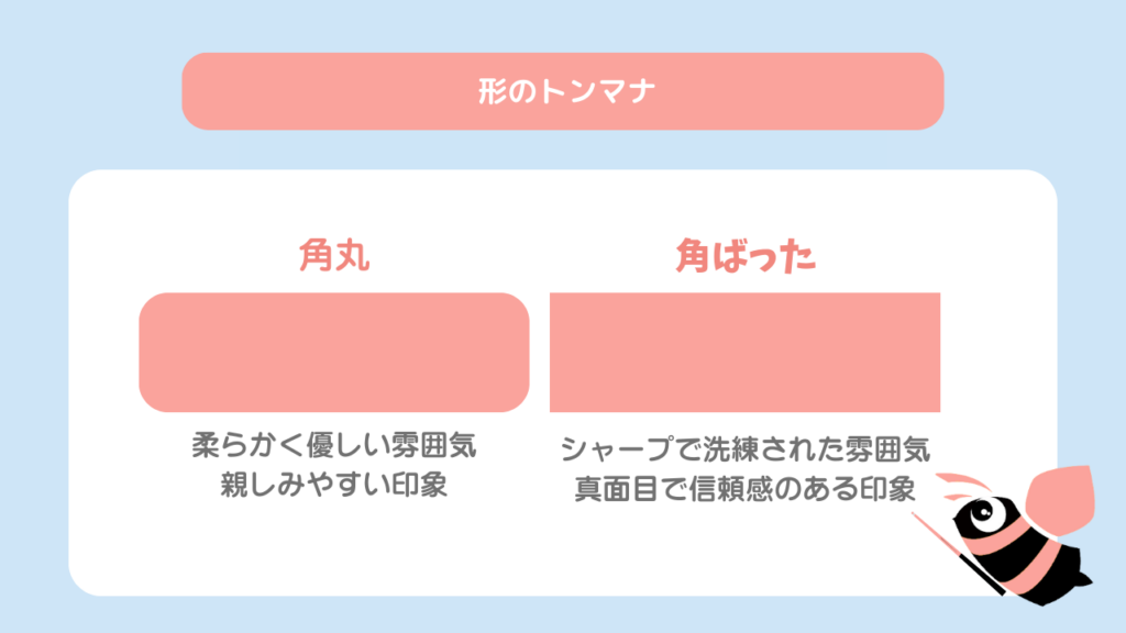 たとえば、親しみやすさを売りにしているブランドなのに、すべてのパーツが角ばっていると、少し堅苦しい印象になってしまうかもしれません。